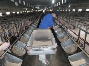 (Sinh viên Lê Thị Thu thực hành quy trình chăn nuôi lợn)